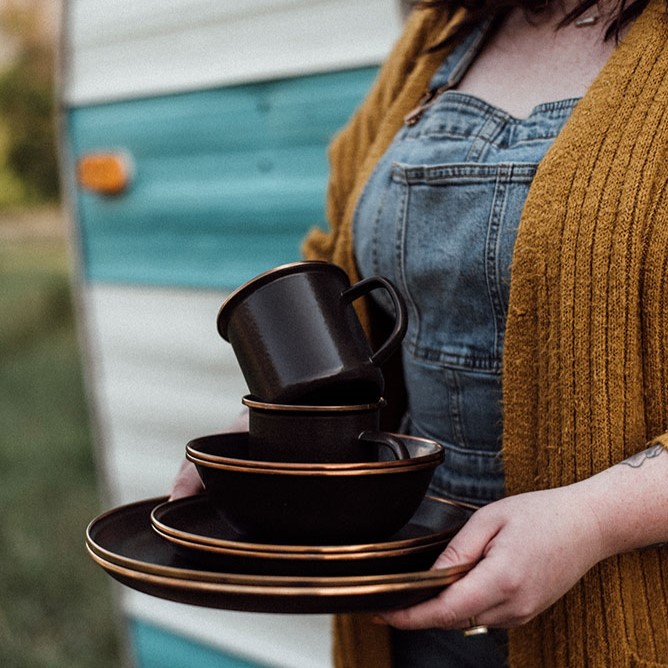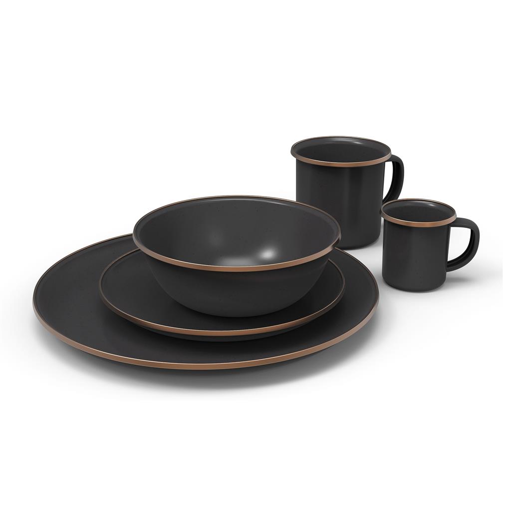 Емайлираните комплекти от съдове за хранене на BAREBONES са перфектни за създаване на запомнящи се преживявания, независимо дали се наслаждавате на небрежна почивка с чаша чай или организирате по-елегантно вечерно събиране на открито. Красивото съчетание от функционалност и стил прави съдовете идеален избор както за ежедневна употреба, така и за специални случаи.