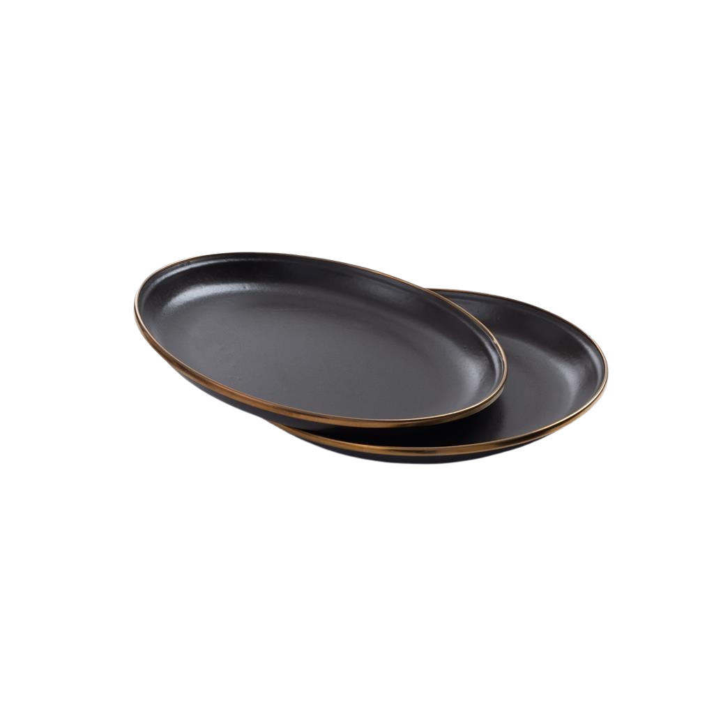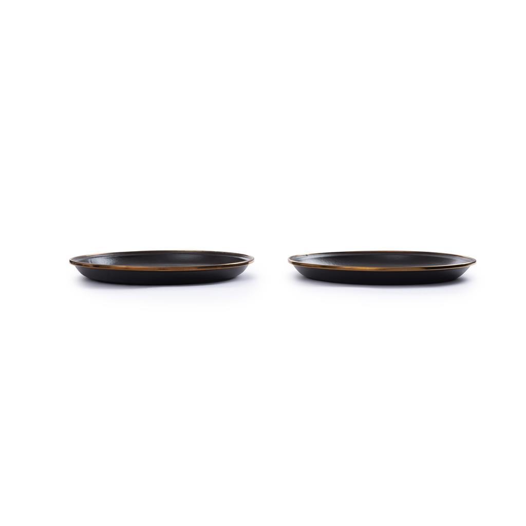 Всеки артикул е изработен от неръждаема стомана с текстурирана шарка на петна. Завършен е с ръчно изработен изпечен бронзов кант от неръждаема стомана, създаващ красив патиниран ефект.
