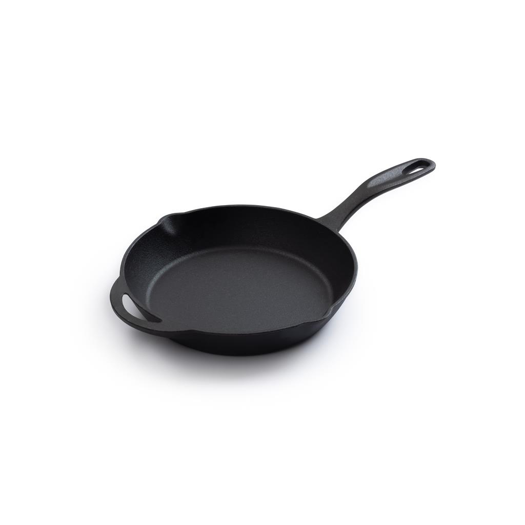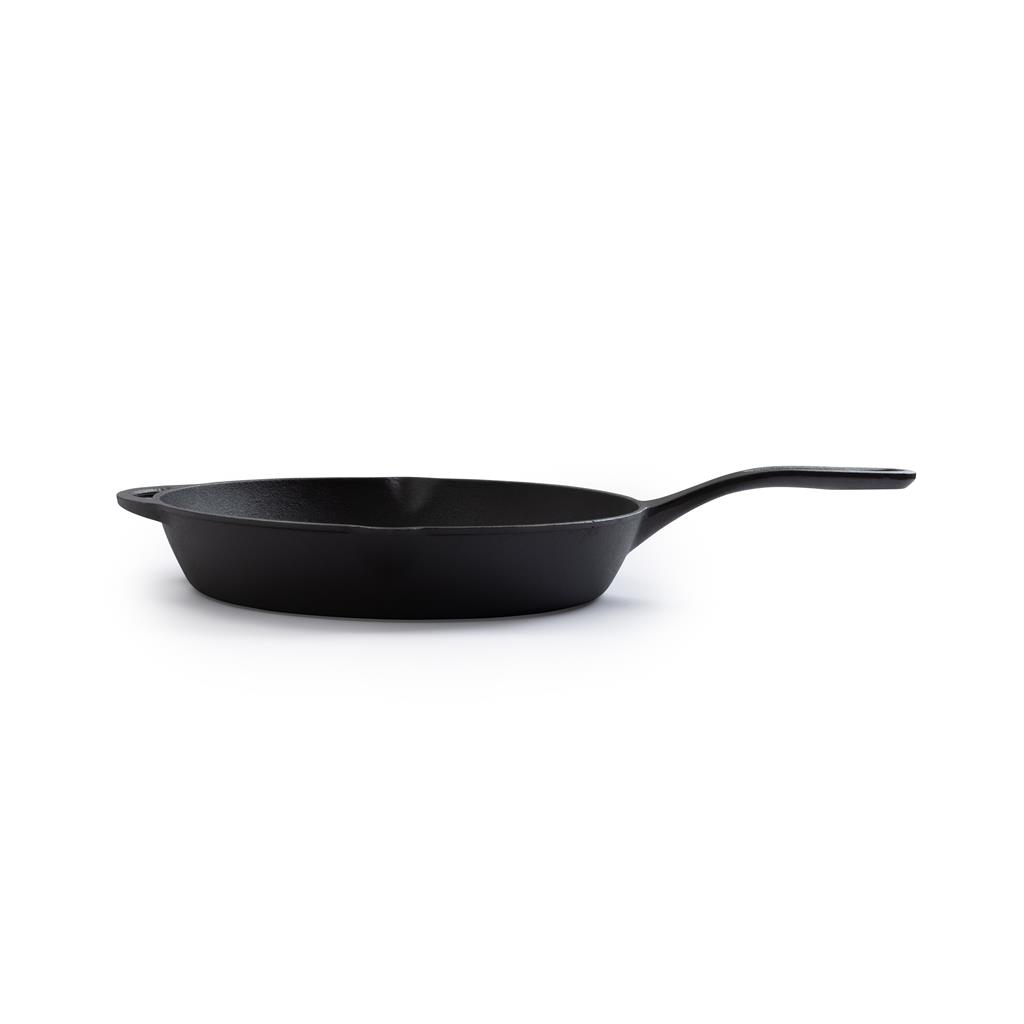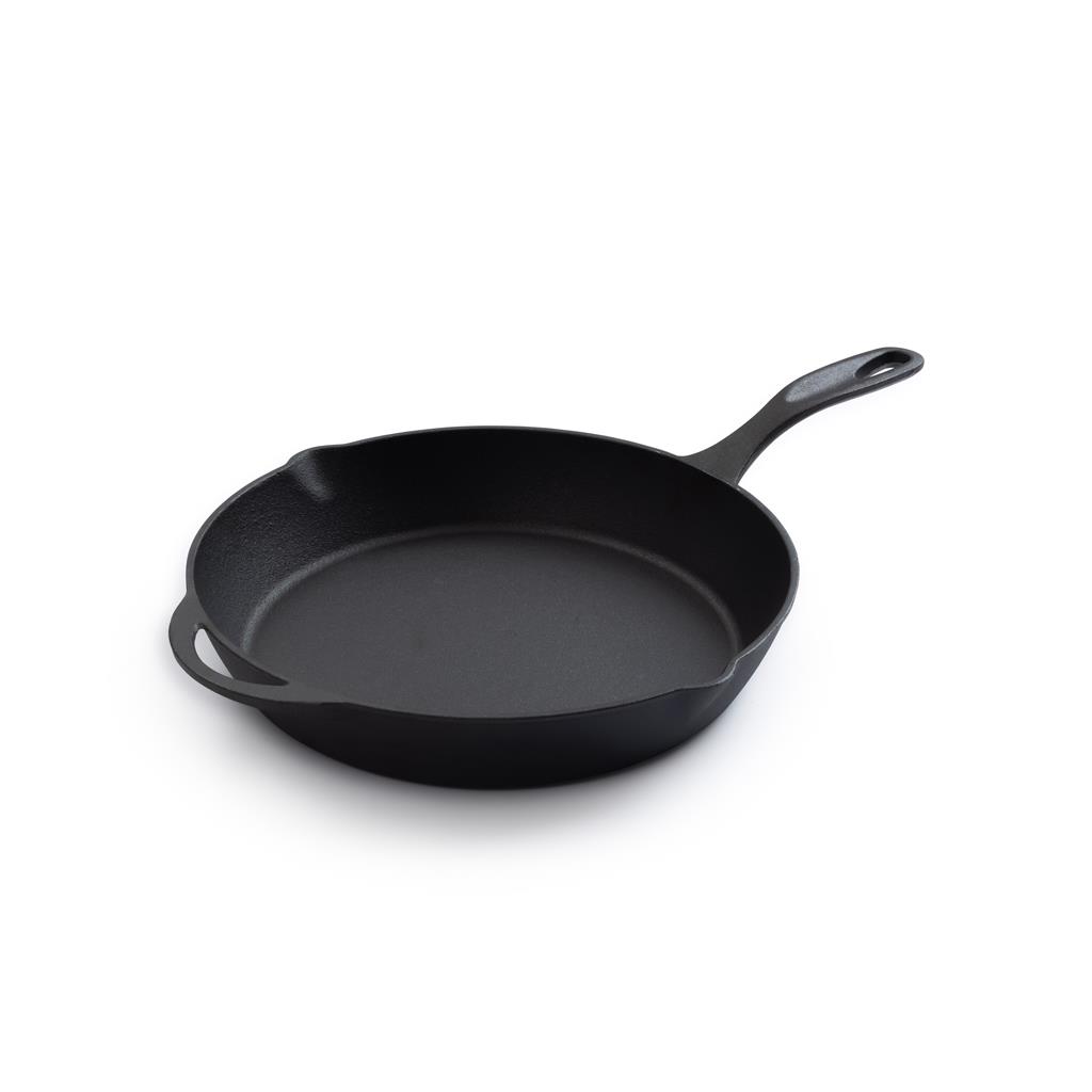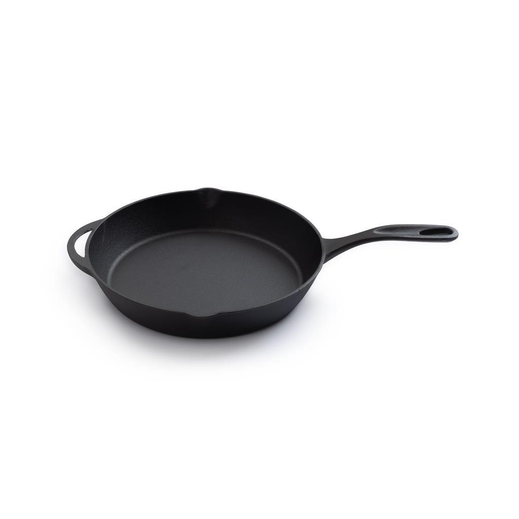 Забележка: Поради по-дебелата основа, препоръчваме първоначално да започнете с бавно готвене на ниска температур, за да опознаете вашия тиган. Както при всички нови чугунени съдове, може да се получи залепване на храната, което ще намалее с времето.