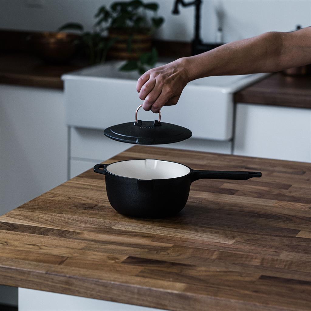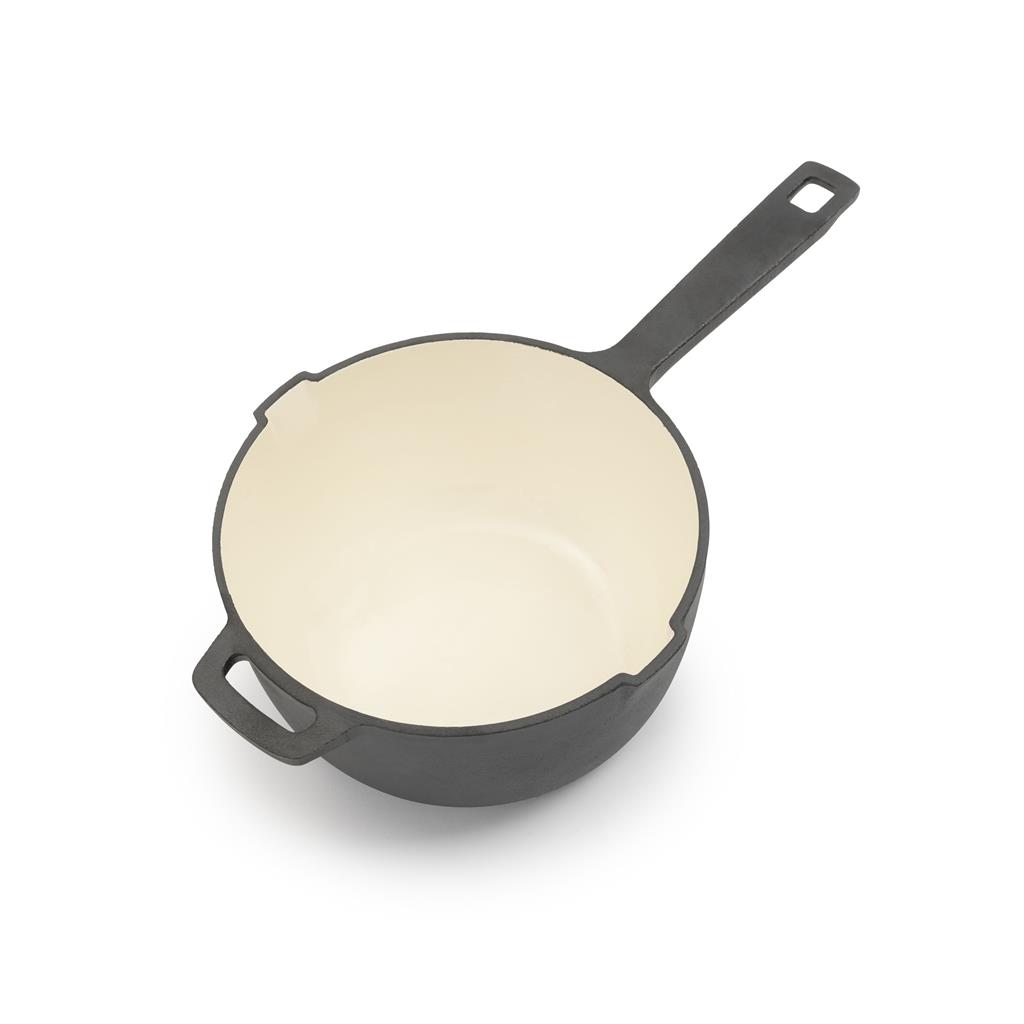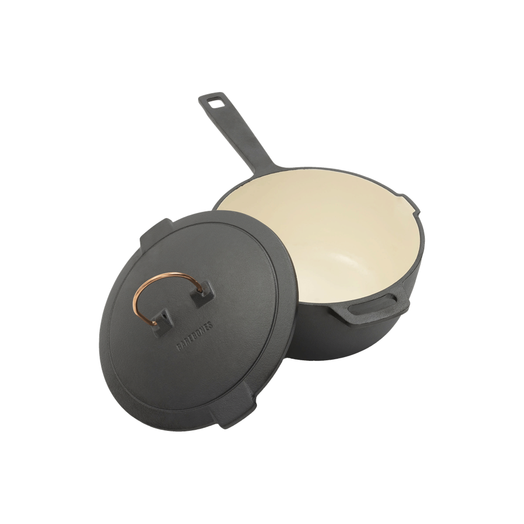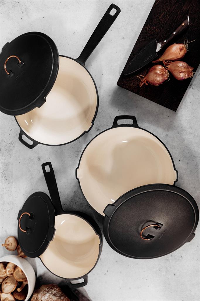 Емайлирано покритие отвътре. Суров чугун отвън. Най-универсалният емайлиран чугунен съд за готвене в света.