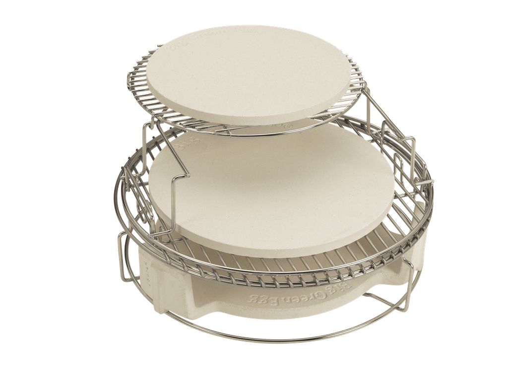 [p class=““]Керамичният конвектор е най-продаваният аксесоар на Big Green Egg. Само с него можете да превърнете вашето камадо барбекю в конвекционна фурна. Питате се как? Конвекторът се поставя между въглищата и стоманената грил решетка. По този начин той действа като топлинен щит между директната топлина от въглищата и вашето ястие, като по този начин превръща печенето от директно в индиректно. Благодарение на овалния дизайн на Big Green Egg, топлият въздух преминава през специалните странични отвори на Конвектора и циркулира в горната част на барбекюто, където вашето ястие се готви бавно и равномерно. А качествената керамика на Big Green Egg изолира този топъл въздух и не му позволява да излезе от никъде другаде, освен от определеното за целта място – комина. Ето защо, в случай че сте любител на крехкото „разпадащо“ се в пръстите ви бавно готвено месце – Керамичният конвектор е точно за вас.[/p]