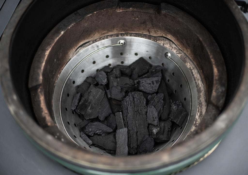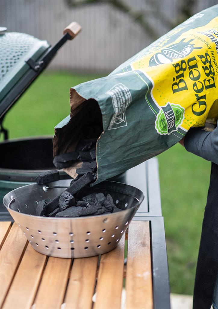 Кошницата за въглища от неръждаема стомана Big Green Egg ще свърши мръсната работа вместо вас. Просто я спуснете в Яйцето с помощта на удобните дръжки, напълнете я с въглища и започнете с готвенето! Искате да добавите въглища? Отсега нататък можете да правите това и в Кошницата.