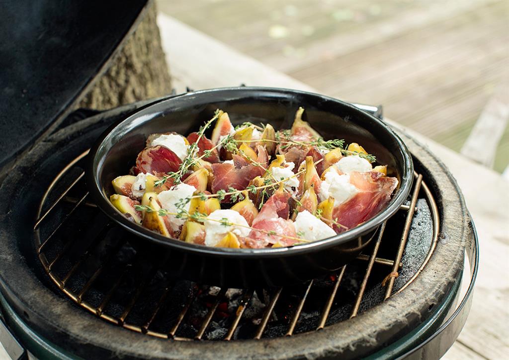 При печенето на пиле се отделя много мазнина и течност. Това не е проблем за кръглата тавичка за отцеждане! Поставете Керамичната или Вертикалната никелирана поставка за печене на пиле в тавичката за отцеждане, преди да ги поставите върху решетката на Big Green Egg. Кръглата тавичка за отцеждане е с диаметър 27 см, незалепващо покритие (ох!) и лесно може да издържи на температури до 232°C.