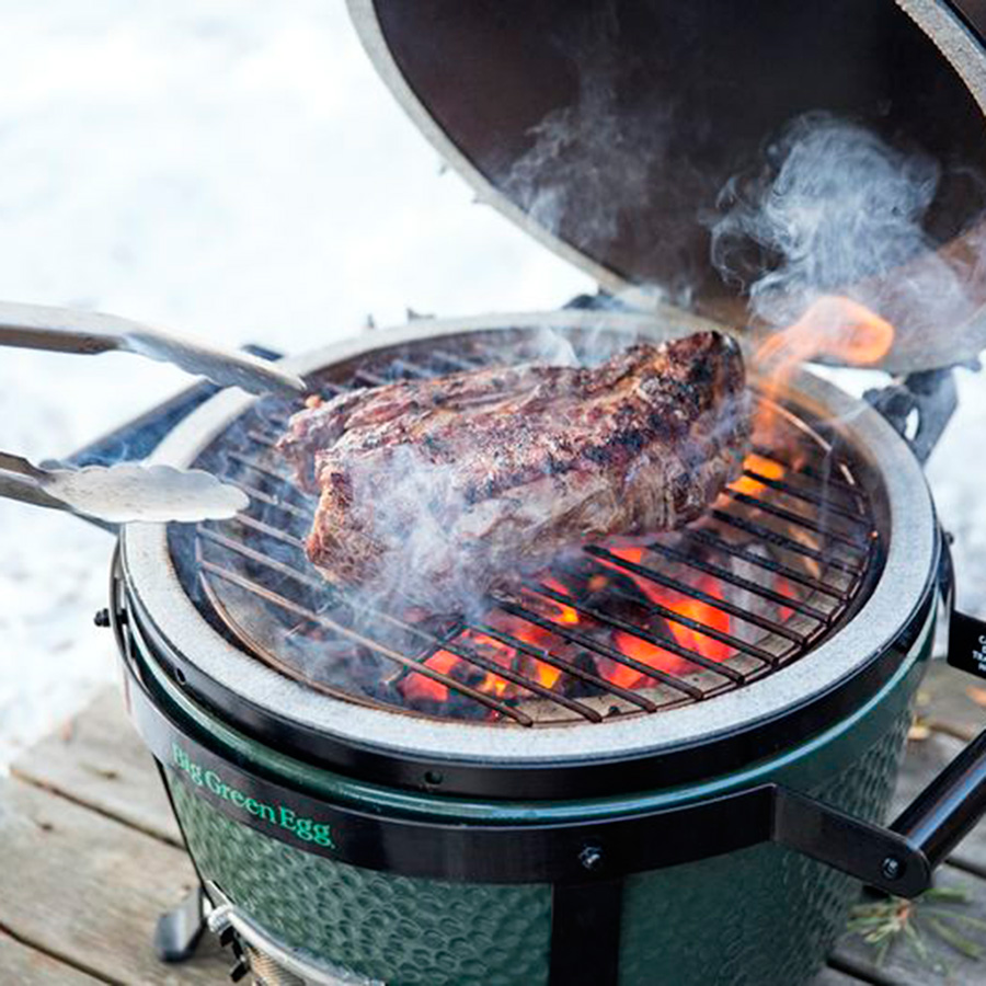 Big Green Egg работи изцяло на дървени въглища и е мултифункционална система за готвене с неограничени възможности – грил, бавно готвене, пица, пържене, задушаване, опушване. Можете да приготвите всичко и да се наслаждавате на перфектно изпечени сочни ястия с несравним опушен вкус и аромат.