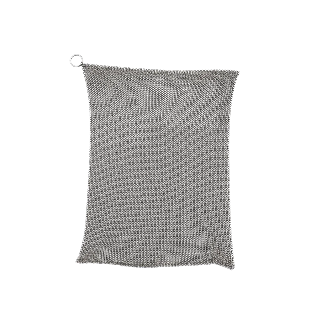 Мрежа за почистване на чугунени тигани и холандски фурни от неръждаема стомана. Текстурираната повърхност помага за премахване на полепнала храна, мръсотия и мазнина от тигани и се отличава при тежко почистване. Създаден да издържи години на честа употреба и няма да надраска или вашите съдове за готвене. Може да се мие в съдомиялна машина. Основен инструмент за почистване на чугун!