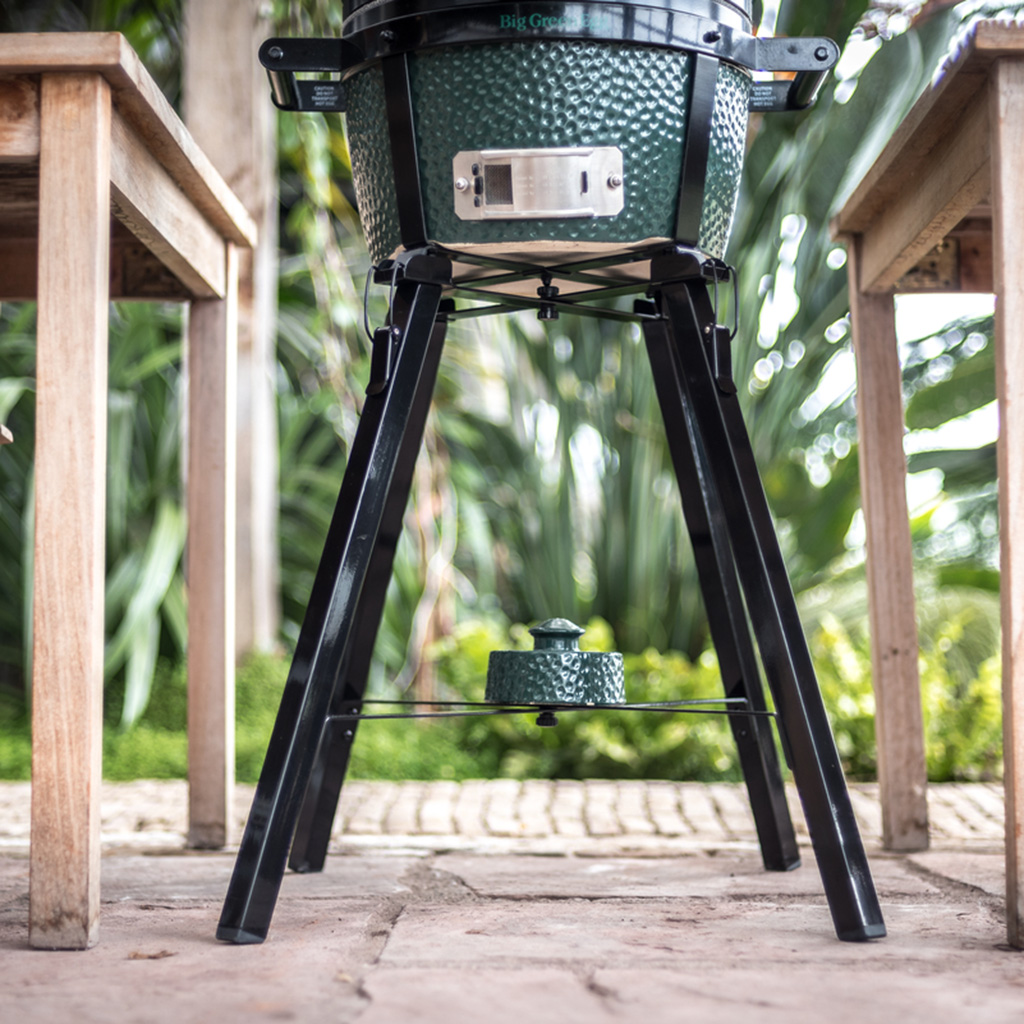 Стойката е направена от подсилена прахово боядисана стомана, което означава, че стои много стабилно. Барбекюто се прикрепя посредством клипсове за закрепяне, което ви позволява да отваряте купола на вашето барбекю без риск то да се обърне. Ще разполагате и с удобен кашон, с който лесно да транспортирате стойката в сгънато състояние.