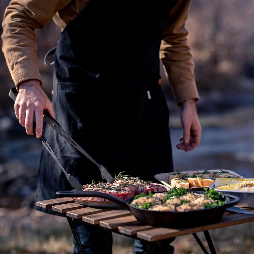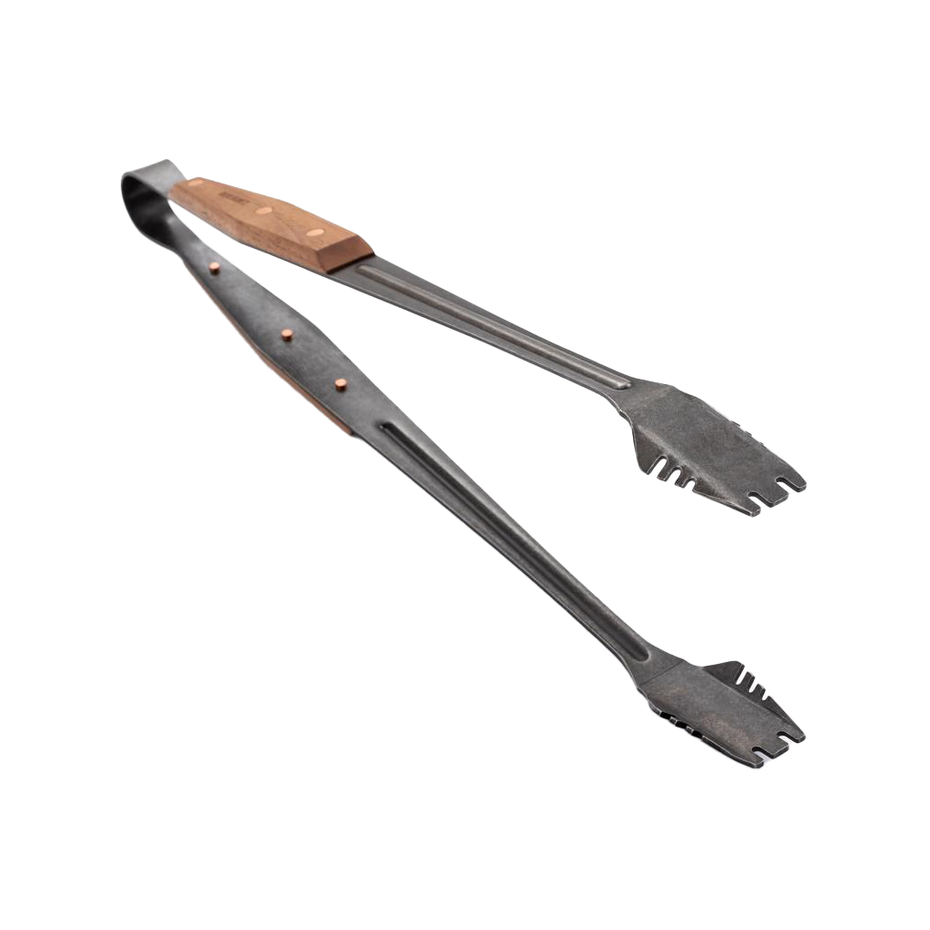 Тази прекрасна барбекю щипка е с униклен дизайн е лека и удобна и ще върши отлична работа. Изработена е от ръчно кована неръждаема стомана и е снабдена с гладка дръжка от естествен орех, която запазва хладно при висока температура. Проектирана за комфорт и безопасност при работа около огън и горещи въглища.