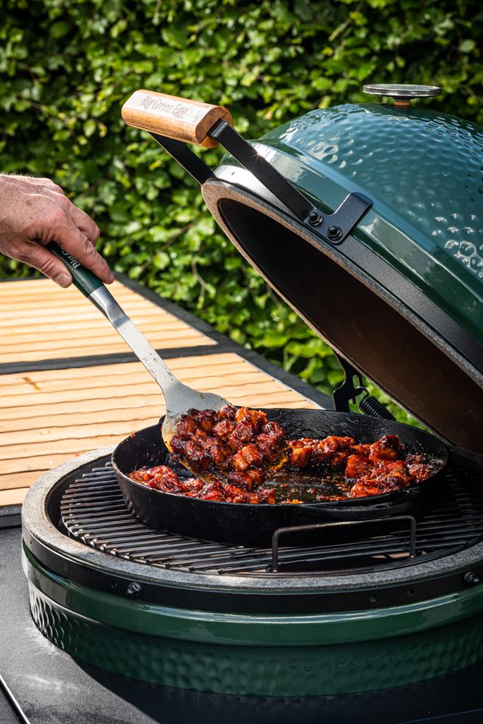 Нова четка от неръждаема стомана стилен дизайн и красиво лого на Big Green Egg на дръжката. Шпатулата е удобна за повдигане и обърщане на всякаква храна, както и за сервиране директно от тавата. За по-деликатни продукти обаче препоръчваме да използвате нашата широка шпатула, с която ще елеминирате риска от разпадането им.