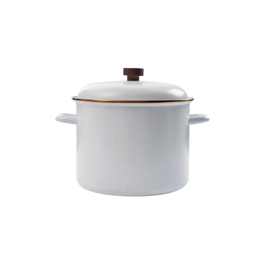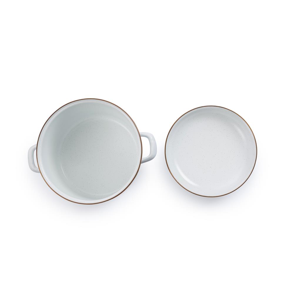 Гответе паста, варете зеленчуци или правете чили, яхнии и супи. Достатъчно изтънчена тенджера както за вашия къмпинг комплект, така и за готвене в кухнята, емайлираната тенджера разполага с ръчно изработен, изпечен бронзов кант от неръждаема стомана, създаващ усещане за красив патиниран ефект.