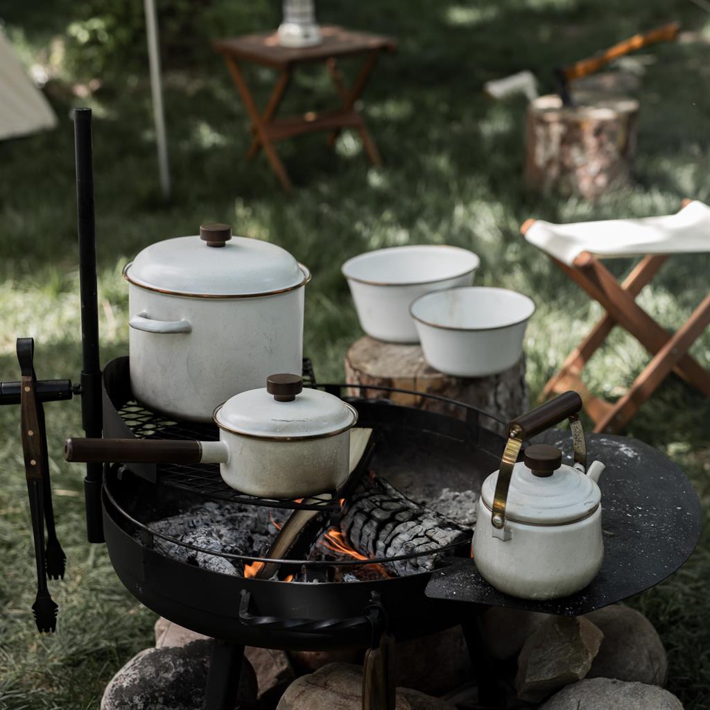 Кремавобелият цвят на яйчената черупка и текстурата на петна карат ястията да изпъкват и допринася за прекрасен, подбран вид на всяка трапеза. Емайлираните комплекти от съдове са перфектни за създаване на запомнящи се преживявания, независимо дали се наслаждавате на небрежна почивка с чаша чай или организирате по-елегантно вечерно събиране на открито. Красивото съчетание от функционалност и стил прави съдовете идеален избор както за ежедневна употреба, така и за специални случаи.